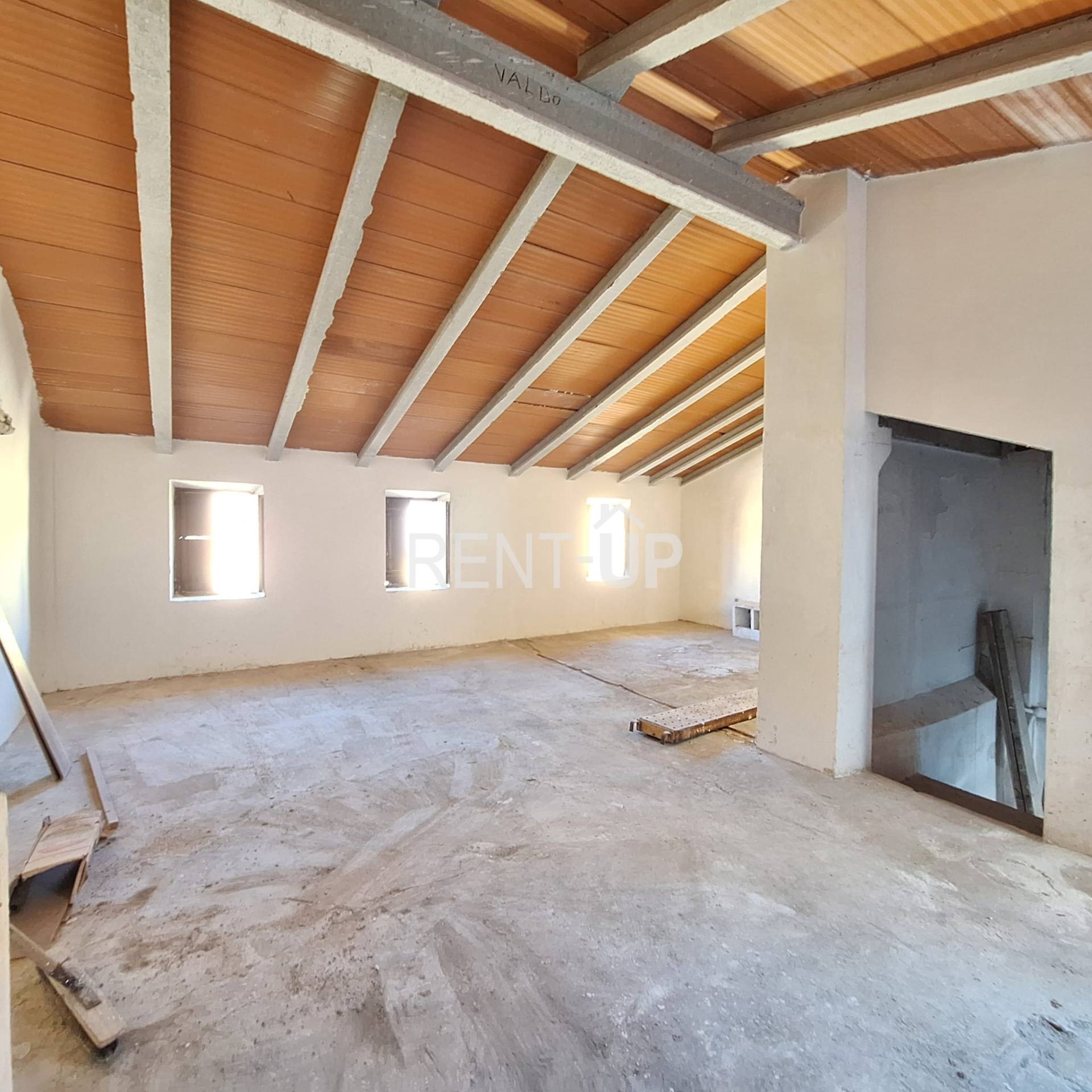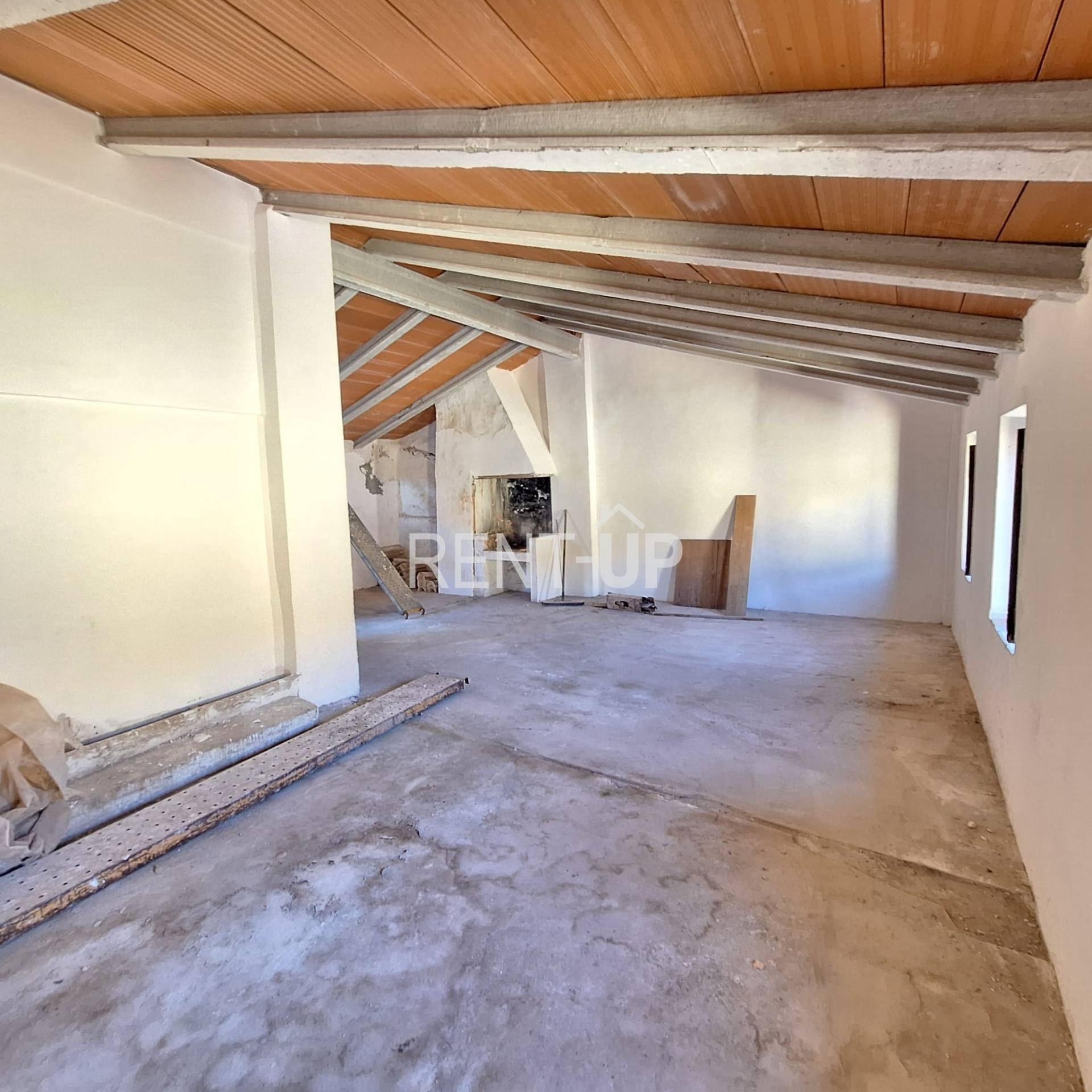 Espacio diáfano totalmente reformado, muy luminoso, con paredes lisas en blanco y tejado completamente nuevo. Destaca una amplia chimenea elevada y abierta, ideal para crear una zona de estar, estudio o espacio multifuncional.
